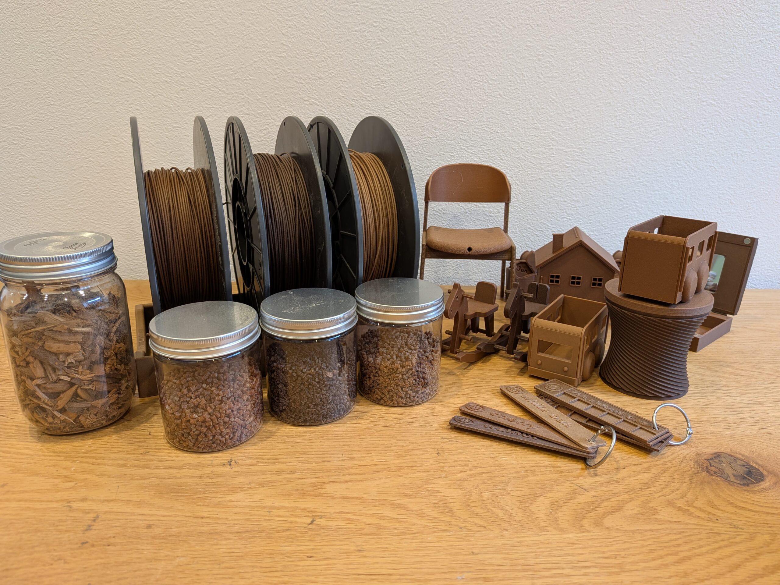 木粉を糸状の「フィラメント」に加工すれば、一般的なFDM(Fused Deposition Modeling)方式の3Dプリンターでの高精細な造形が可能になります。企業のロゴをあしらった記念品、施設の案内サイン、精巧な建築模型、オリジナルデザインのグッズなど、小ロット多品種のニーズに柔軟に応えることができます。お客様の想いを、細部にまでこだわった形で製品に宿すことができるのです。